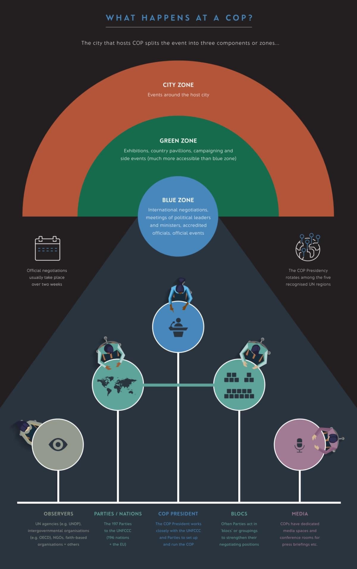 - COP, or the Conference of the Parties, is the supreme decisionmaking body of the United Nations Framework Convention on Climate Change (UNFCCC).
