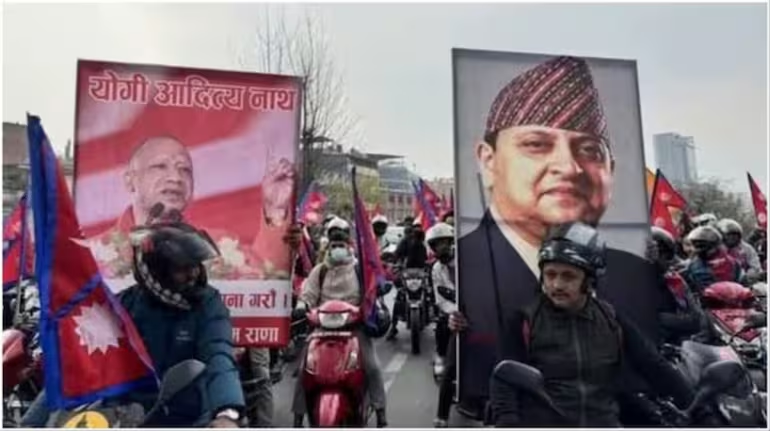 - Nepal government suspects India's role in pro-monarchy uprising as Yogi's posters were held at Kathmandu rally.