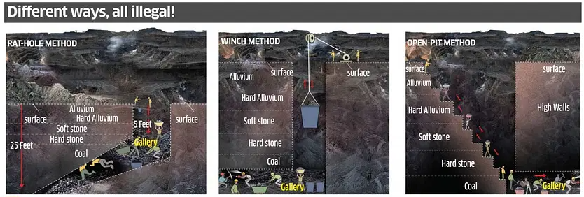 रैट-होल खनन: मुद्दे और चिंताएँ