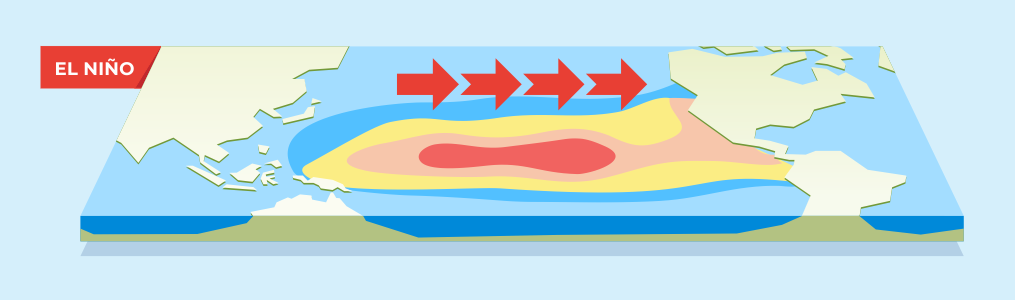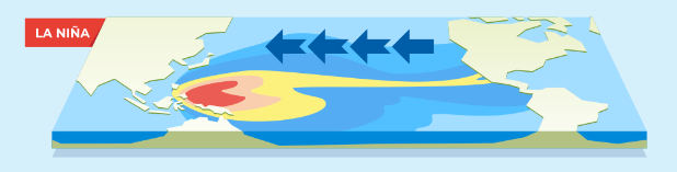 - During La Niña events, trade winds are even stronger than usual, pushing more warm water toward Asia.