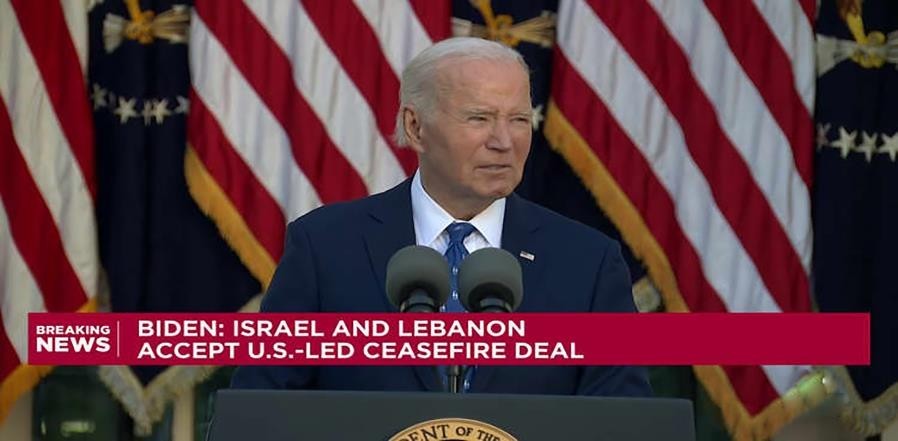 - US president Joe Biden released a joint statement with French President Emmanuel Macron, emphasising that both countries will work with Israel and Lebanon to ensure this arrangement is fully implemented and enforced.