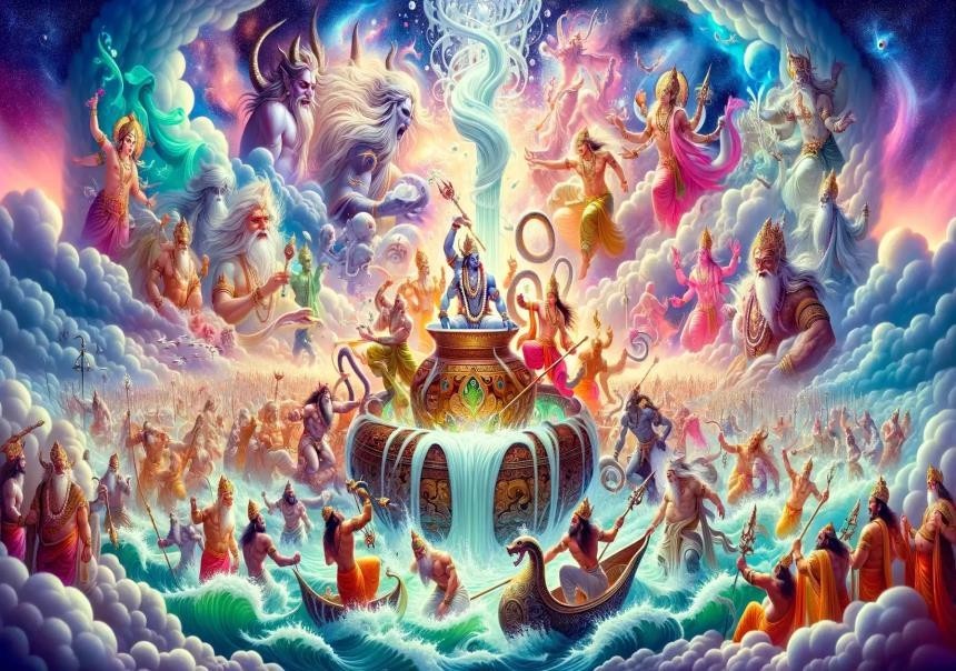 - As per Hindu mythology, the origin of the Kumbh Melas is linked to Samudra Manthan or the churning of the cosmic ocean, when deities and demons came together to attain amrit, or the nectar of immortality.