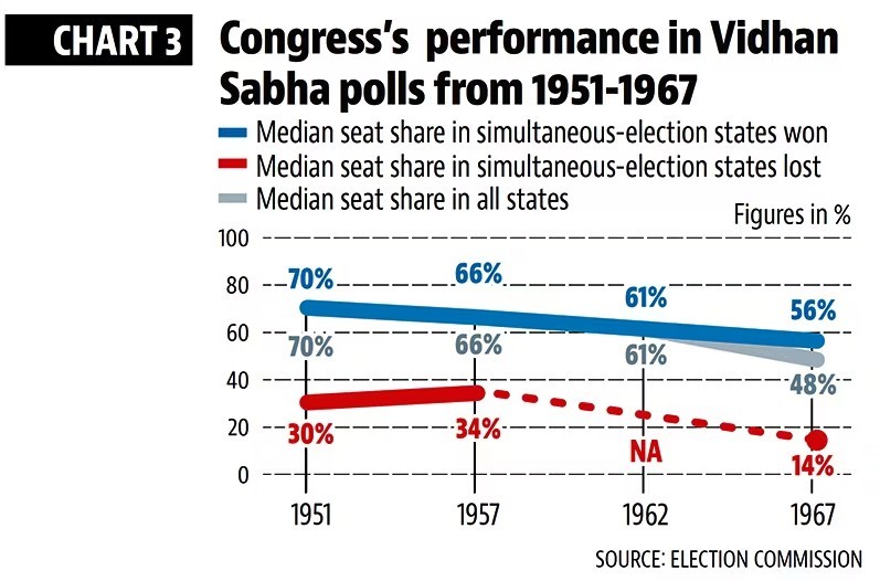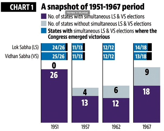 - India's government is revisiting the practice of One Nation One Election for the Lok Sabha and state assemblies, citing its prevalence from 1951 to 1967.