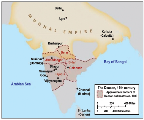 - हालाँकि, गोलकुंडा, बीजापुर और अहमदनगर के राज्य दक्कन क्षेत्र की राजनीति में तब तक प्रमुख भूमिका निभाते रहे जब तक कि सत्रहवीं शताब्दी में वे मुग़ल साम्राज्य में शामिल नहीं हो गए।