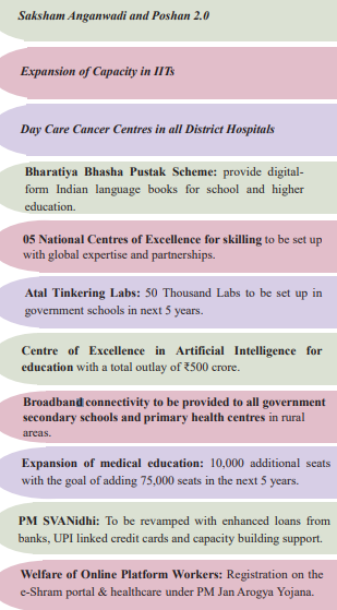 - निवेश (तीसरा इंजन): स्कूलों में 50,000 अटल टिंकरिंग लैब स्थापित की जाएँगी।