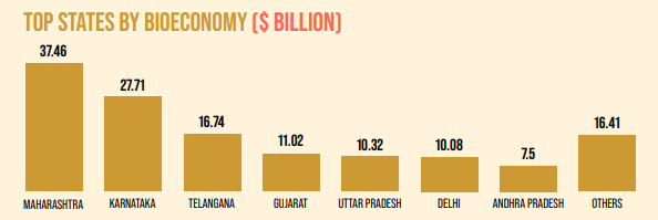 - 2022 में, जैव अर्थव्यवस्था भारत के सकल घरेलू उत्पाद (GDP) 3.47 ट्रिलियन डॉलर का 4% हिस्सा होगी और 2 मिलियन से अधिक लोगों को रोजगार देगी।