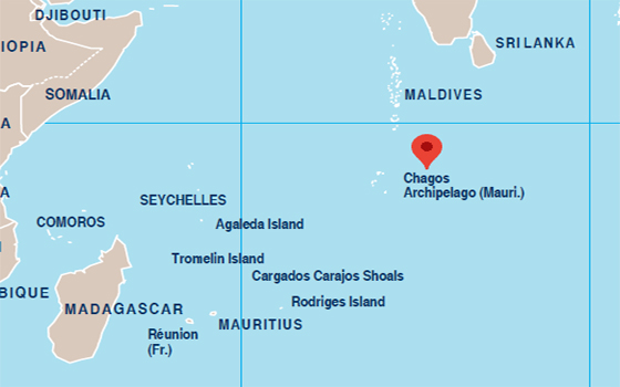 – चागोस द्वीपसमूह मॉरीशस से लगभग 2,200 किमी उत्तर-पूर्व में स्थित है। इसका क्षेत्रफल 60 वर्ग किमी है।चागोस द्वीपसमूह