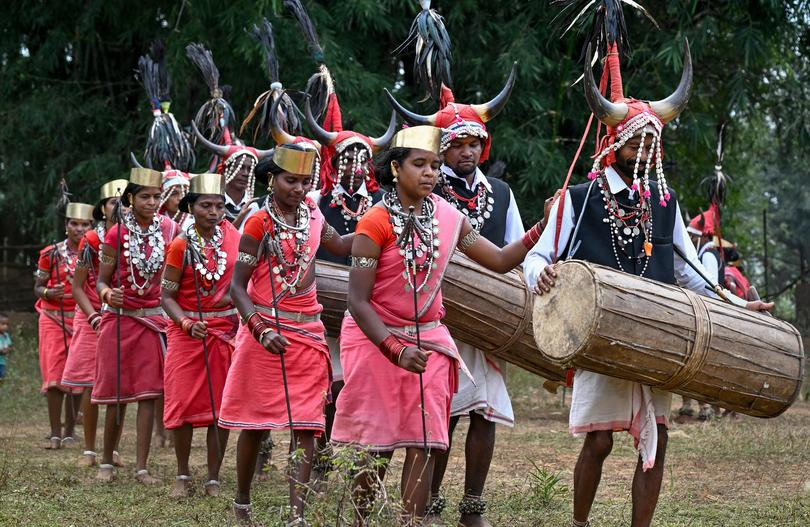 छत्तीसगढ़ के बस्तर ज़िले के जुड़िया पारा में आयोजित एक ग्राम उत्सव के दौरान पारंपरिक बाइसन हॉर्न मारिया नृत्य प्रस्तुत किया गया।