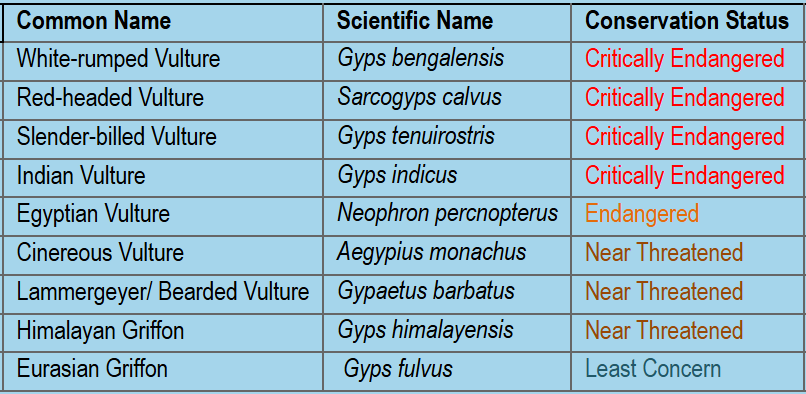 - 1990 के दशक से भारतीय लंबी चोंच वाले गिद्धों की जनसंख्या में 97% से अधिक की गिरावट आई है, जिसका मुख्य कारण पशु चिकित्सा दवा डाइक्लोफेनाक से होने वाला ज़हर है, जो घातक किडनी फेलियर से जुड़ा है।