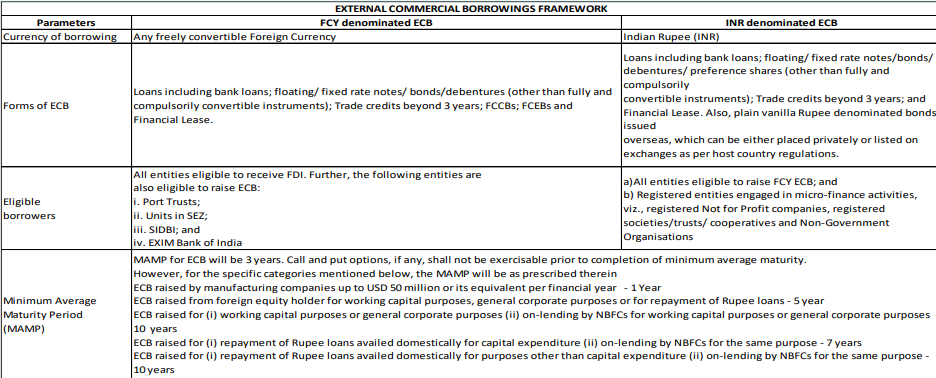 - इन उधारों को न्यूनतम परिपक्वता, अनुमत और गैर-अनुमत अंतिम उपयोग, अधिकतम समग्र लागत सीमा आदि जैसे मापदंडों के अनुरूप होना चाहिए।