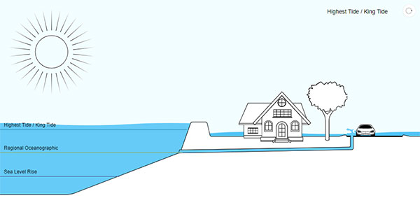 - उच्च ज्वार बाढ़ गंभीरता के तीन स्तरों में आती है: मामूली, मध्यम और प्रमुख।