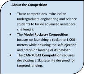 - The Indian National Space Promotion and Authorization Centre (IN-SPACe) has opened applications for the second edition of IN-SPACe’s Model Rocketry Competition.