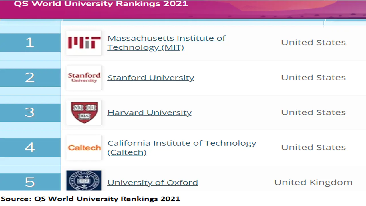 • Parameters used: The performance of universities is measured on various parameters such as academic reputation, employer reputation, citation per faculty, faculty-student ratio, international faculty and international students.
