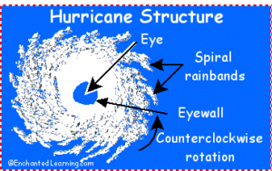 • The smaller the eye, the stronger the winds. The winds spiral in a counterclockwise direction into the storm’s low-pressure centre.