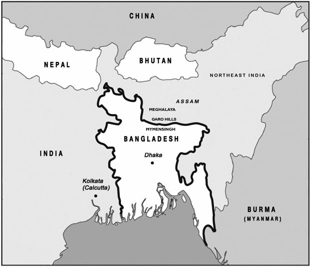 - The border passes through West Bengal, Assam, Meghalaya, Tripura, and Mizoram.