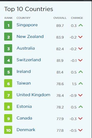 - Economic Freedom Index published last week by US conservative think-tank, The Heritage Foundation.