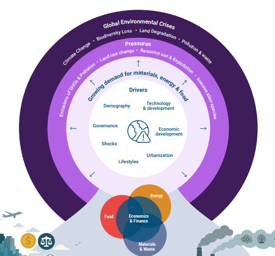 - Failures of Current Policies: The current policies are insufficient — without transformation, none of the environmental SDGs will be achieved, and internationally agreed environmental goals (including the Paris Agreement, Kunming-Montreal Global Biodiversity Framework, and Aichi Targets) will not be met.