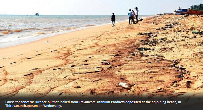 In News: On Kerala coast, 2000 litres of furnace oil leaked from Travancore Titanium Products (TTP) factory.