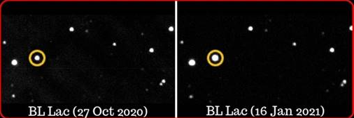 • Indian Astronomers have reported one of the strongest flares from a feeding supermassive black hole or blazar called BL Lacertae.