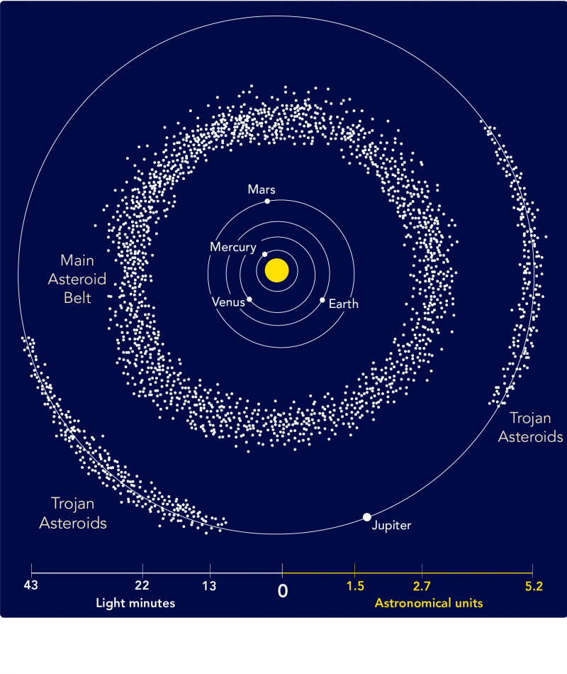 - Some asteroids go in front of and behind Jupiter, which are called Trojans.