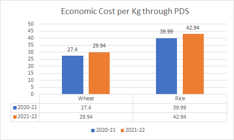 In News: At the projected economic cost of Rs 29.94/kg for wheat and Rs 42.94/kg for rice, the corresponding per-kg PDS consumer subsidy in the coming fiscal would work out to Rs 27.94 and Rs 39.94, respectively.