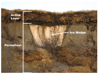 - It is composed of “a combination of soil, rocks, and sand that are held together by ice. The soil and ice in permafrost stay frozen all year long.”