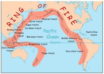 - Some of the most active volcanoes are located in the Pacific Ring of Fire, which includes New Zealand, Southeast Asia, Japan and the western coast of the Americas. About 90% of all earthquakes worldwide strike within this region.