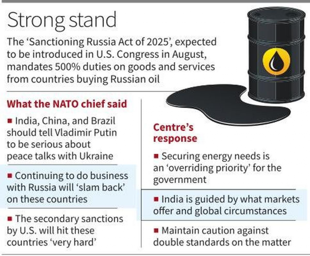 - India has firmly pushed back against NATO Secretary’s warning of secondary sanctions over its continued trade with Russia.