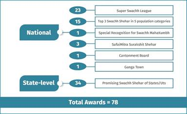• In total, 78 awards were presented, recognising cities, cantonments, and institutions for their exemplary performance across a range of sanitation parameters.