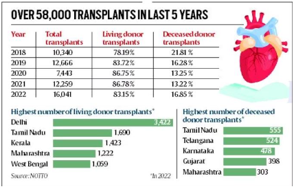 • Among living donor transplants, where organs from family members are used, Delhi topped the table overtaking Tamil Nadu.