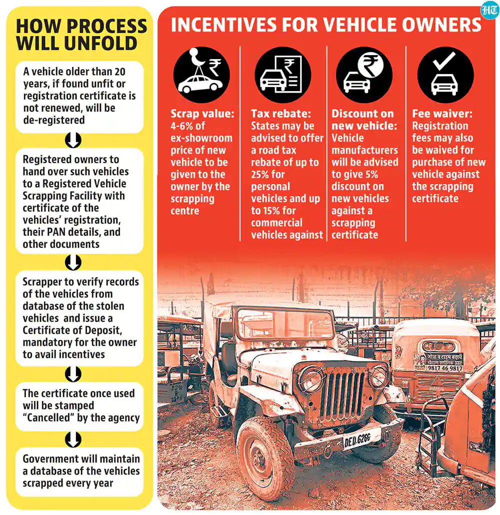 - The Ministry has issued rules for the registration procedure, powers, and the scrapping procedure to be followed by RVSFs.