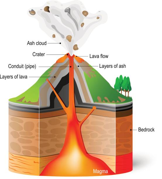 • Stratovolcanoes are composed of volcanic rock types that vary from basalt to rhyolite, but their composition is generally andesite. They may erupt many thousands of times over life spans of millions of years.