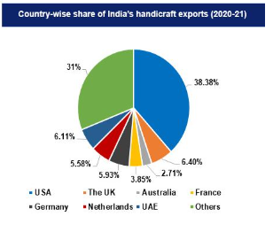 The major handicraft export destinations for India are USA, the UK, LAC, Australia, Canada, France, Germany, Italy, Japan, Netherlands, the UAE and Switzerland.