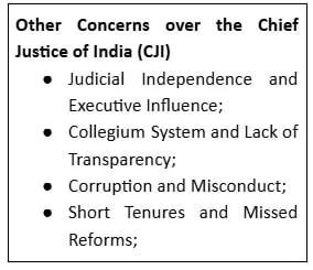 • Tenure Security: The CJI can be removed through impeachment under Article 124(4) and (5). The removal requires proven misbehavior or incapacity.