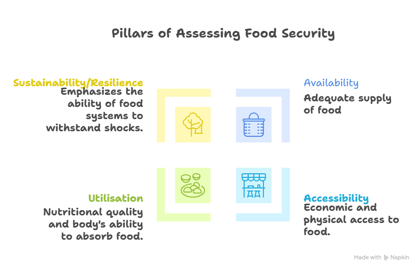 - India’s baseline score in the new Food Security Index is 5.31, significantly below the global average of 6.74.