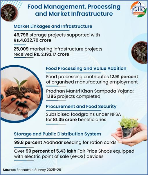 - India’s agricultural transformation reflects a balanced approach that combines strong production growth, expanding global market presence, and targeted policy interventions across the farm-to-market value chain.