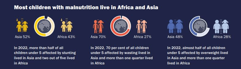 - The UNICEF, WHO and the World Bank inter-agency team update the joint global and regional estimates of malnutrition among children under 5 years of age each year.
