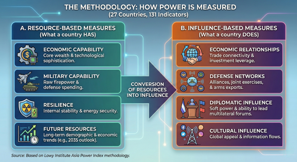 • It is a derived analytical measure from the Asia Power Index compiled annually by the Lowy Institute.