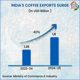- India ranks as the fifth-largest exporter of coffee.