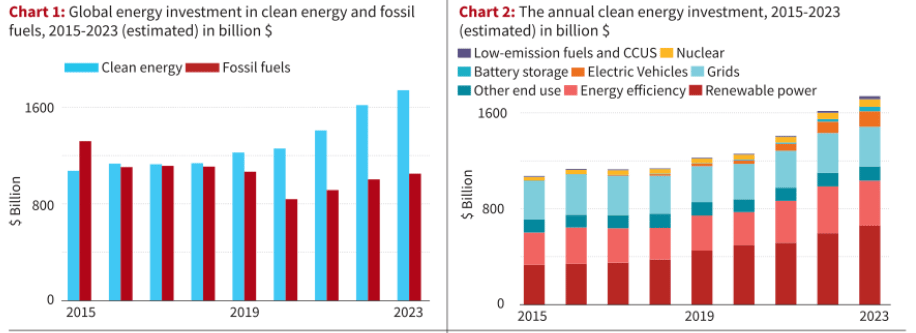 - annual investments in green energy have outpaced those in fossil fuels during this period, recording a growth of 24% against 15%.