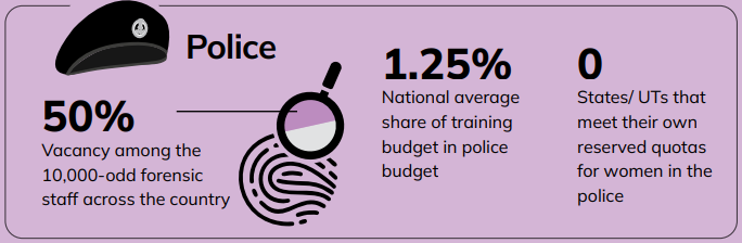 - It is a national periodic assessment that evaluates the capacity of India’s justice system across four key pillars—police, judiciary, prisons, and legal aid.