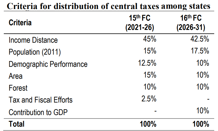 - Demographic Performance: Redefined by the 16th FC to reflect population growth between 1971 and 2011, rather than Total Fertility Rate (TFR).