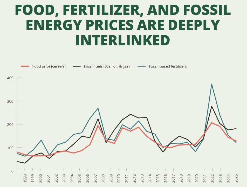 - Agricultural Risks: Price volatility affects farmers’ input costs, and potential impact on food production.