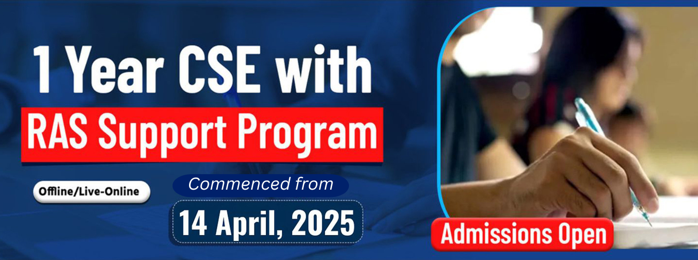 With the objective to hand hold our students into the preparation of Rajasthan Administrative Services alongside Civil Services classes, our initiative RAS SUPPORT PROGRAM aims to cover the complete Rajasthan section including Rajasthan History Art and Culture, Rajasthan GK, Rajasthan Economy Survey, Budget and Rajasthan Current Affairs. Thereby, preparing the students holistically to face and ace the RAS Examination with optimum utilization of time and other resources.