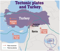 | Background: – The Kahramanmaraş earthquake sequence in Turkey in February 2023 caused a tremendous amount of damage and loss of life. 1. A magnitude 7.8 earthquake occurred in southern Turkey near the northern border of Syria, and it was followed by a magnitude 7.5 earthquake located in the southwest. – The sequence occurred across several faults, including and associated with the East Anatolian Fault, a strike-slip fault that has had many major earthquakes in the past. – The first earthquake was the most devastating to hit earthquake-prone Turkey in more than 20 years and was as strong as one in 1939, the most powerful recorded there. – It was centred near Gaziantep in south-central Turkey, home to thousands of Syrian refugees and the many humanitarian aid organisations. 1. Gaziantep is situated on the Sajur River on the Aintab plateau. Other Zones: – The Narlı Fault and Cardak–Surgu Fault Zone are located in eastern Turkey, which extend from the southern to the northeastern part of Turkey, roughly parallel to the border with Armenia. |