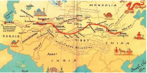 | Ancient Silk Road – The Silk Road was a network of trade routes connecting China and the Far East with the Middle East and Europe. – Silk was transported from east to west throughout the year except for harsh winters which brought back gold and silver coins and other precious goods in exchange. – It was established when the Han Dynasty in China officially opened trade with the West in 130 B.C., the Silk Road routes remained in use until A.D. 1453, until the Ottoman Empire boycotted trade with China and closed them. |