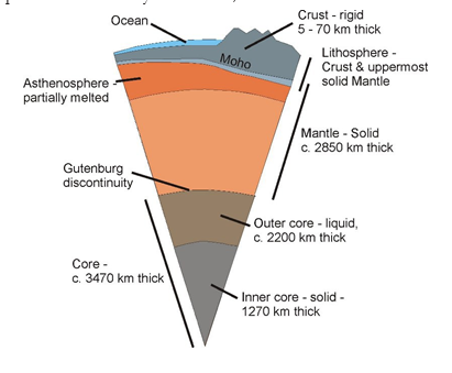 - It consists of hot, dense, iron and magnesium-rich solid rock.