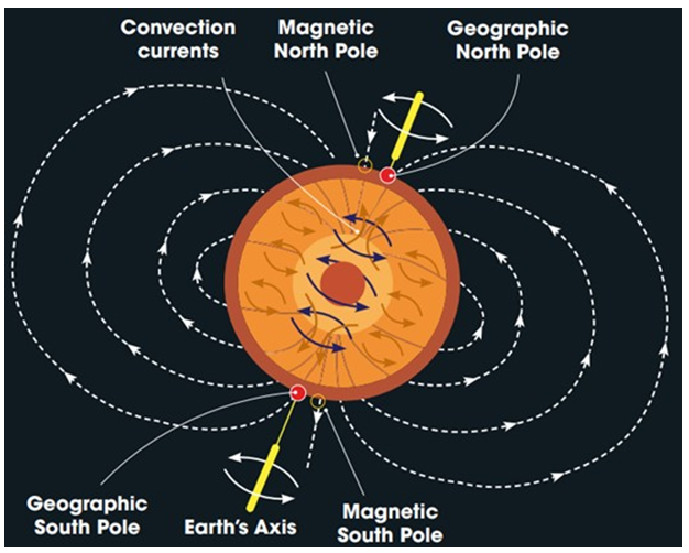 - Earth's magnetic field also acts as protective covering from cosmic radiation and from the charged particles emitted by our Sun. It also provides the basis for navigation with a compass.