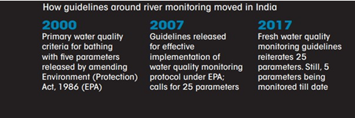 - CPCB currently carries out manual monitoring for five parameters, including faecal coliform.