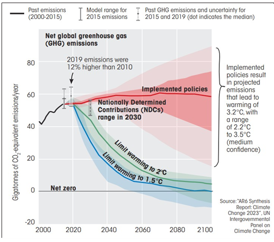 - It reiterates that due to human activities excess emissions have raised the global temperature by 1.1°C above the 1850-1900 level.